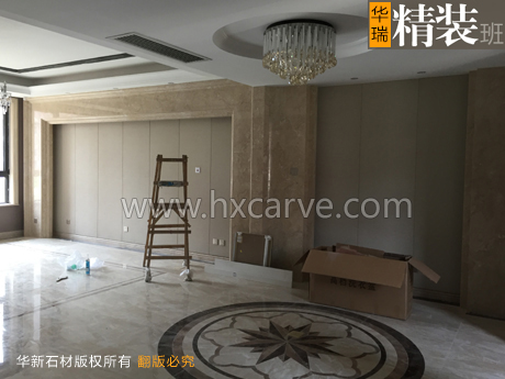 石材電視背景墻、石材地面拼花、石材樓梯踏步